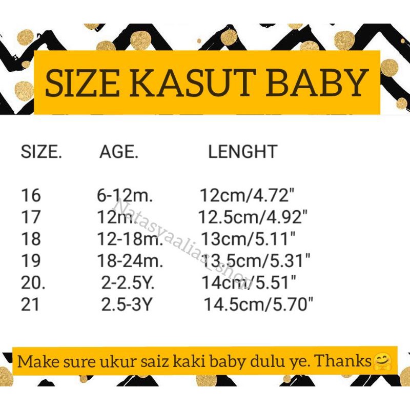 Carta saiz kasut bayi Saiz AS Julat Umur Panjang dalam 1 Kurang daripada 6 minggu-3 bulan 35 2 3-12 bulan 375 25 3-12 bulan 4 3 3-12 bulan 413. Berkaki ayam sebanyak mungkin atau dalam stoking tidak licinBerkaki ayam sebanyak mungkin. Ini bagi memastikan kaki berasa lebih selesa dengan aliran udara yang baik 2 - Jika kasut tertutup jenis bertutup pastikan juga di ambil kira tentang ketebalan stokin dan sebagainya.
